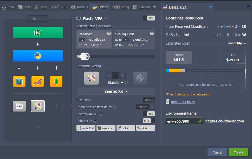 Certified software stacks for Java, PHP, Node.js, Ruby, Python, .NET and Go applications with automated scaling, clustering and updates